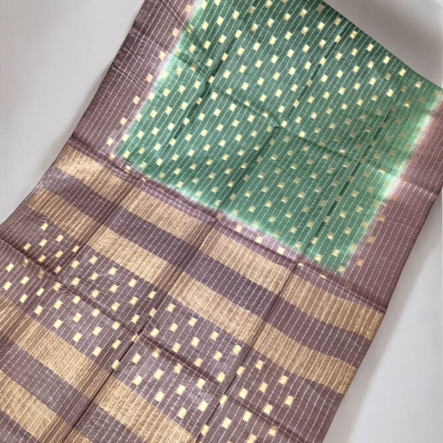 - Fabric: Crafted from Katan Silk with square buttas woven in copper zari, creating a rich, textured design that shines with sophistication.