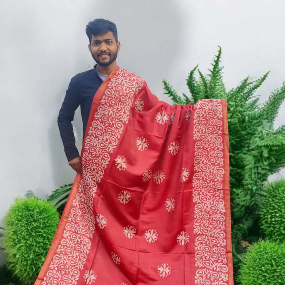 Red Batik Print Soft Silk Saree